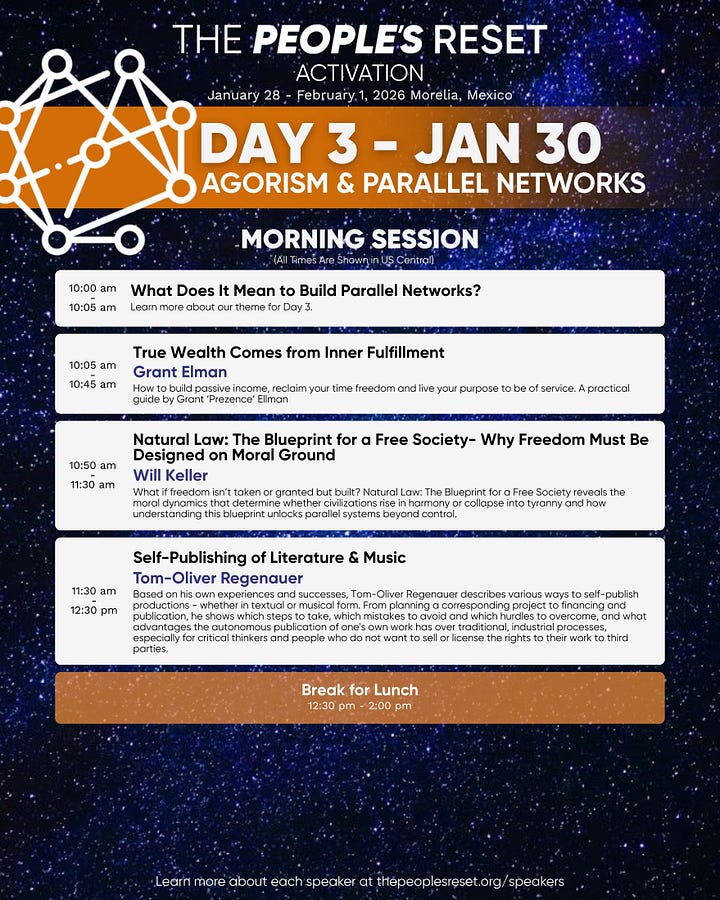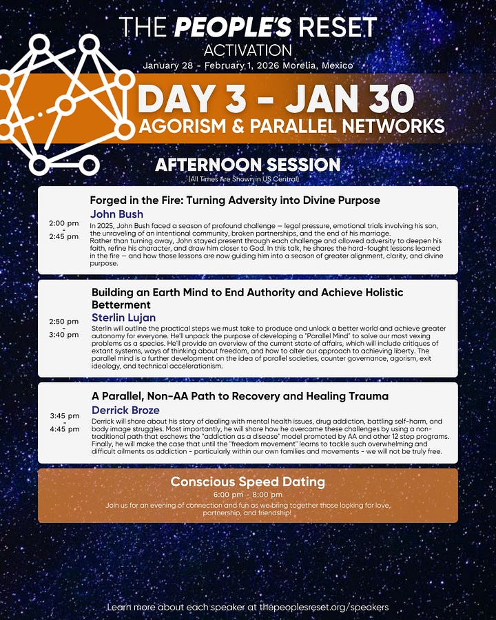 Introducing the Schedule for The People’s Reset 2026, Day 3: Agorism & Parallel Networks!