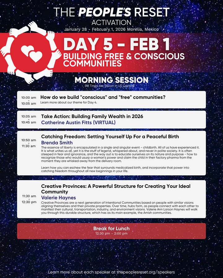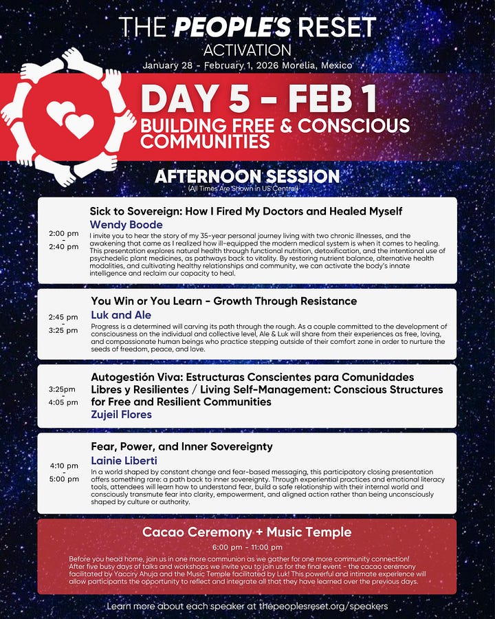 Introducing the Schedule for The People’s Reset 2026, Day 5: Building Free & Conscious Communities!